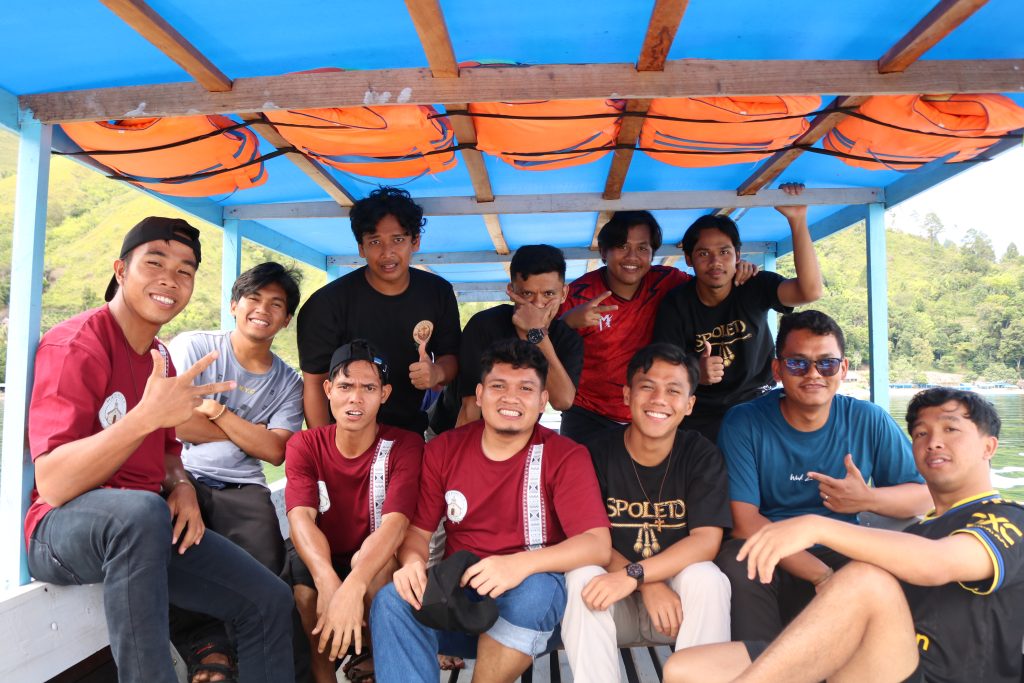 Para anggota komunitas menikmati kebersamaan dalam semangat persaudaraan yang hangat. Dengan latar pemandangan Danau Toba yang memukau, seluruh peserta larut dalam kegembiraan, mempererat relasi satu sama lain, serta menyegarkan kembali semangat panggilan hidup religius.
